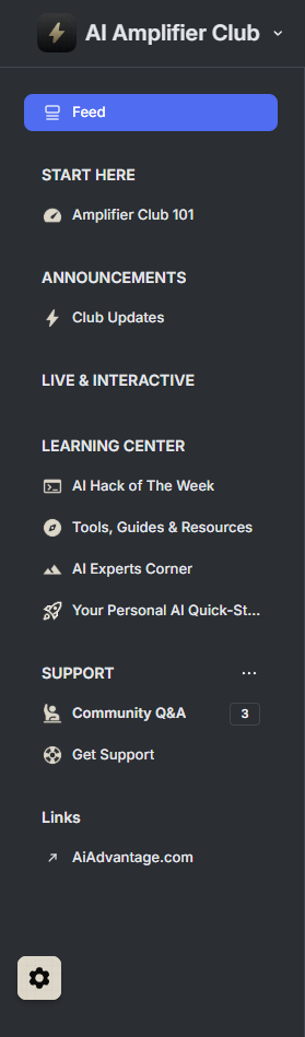 Note: If you are an AI Advantage Bootcamp member, your left sidebar menu will look a bit different, as you will have additional options under the AIA Bootcamp section.