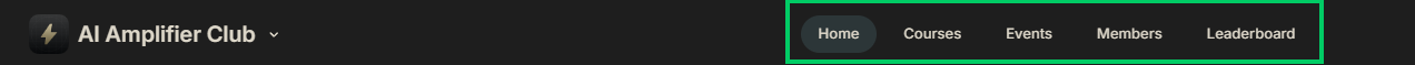 The Home tab is where you’ll spend most of your time. It’s your central hub, giving you access to everything in the left sidebar navigation, including the Feed homepage, Club Updates, Live Trainings, and more.