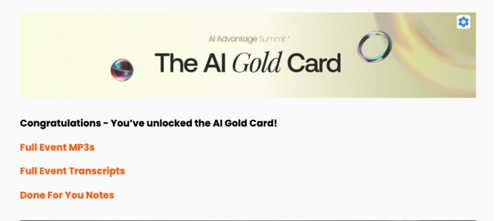 If you were a VIP Elite Experience attendee of the AI Advantage Summit, you will have lifetime access to your personal event dashboard. Your personal link should have been emailed to you, or you can login here: https://aiadvantagesummit.obv.io/login!