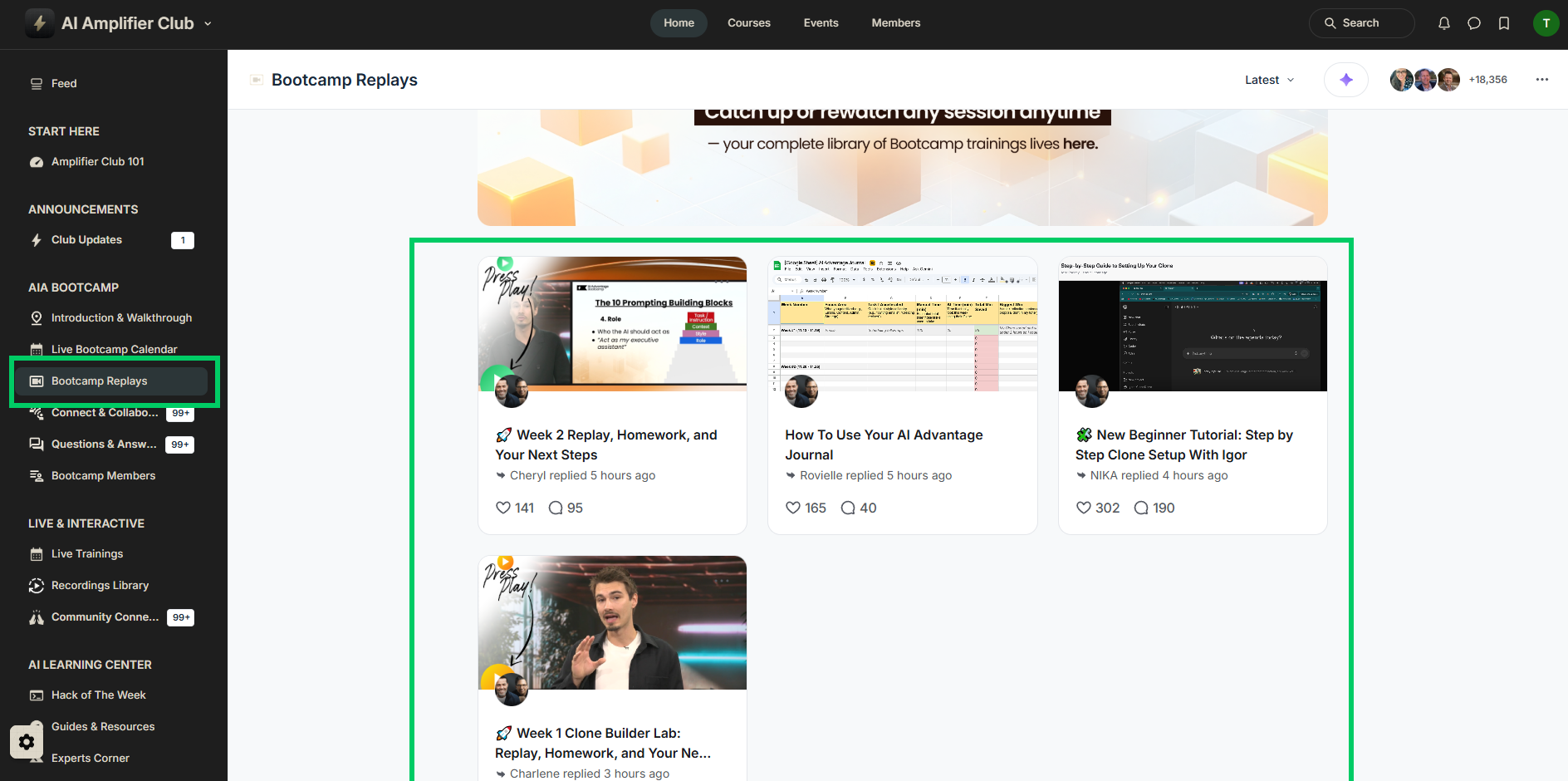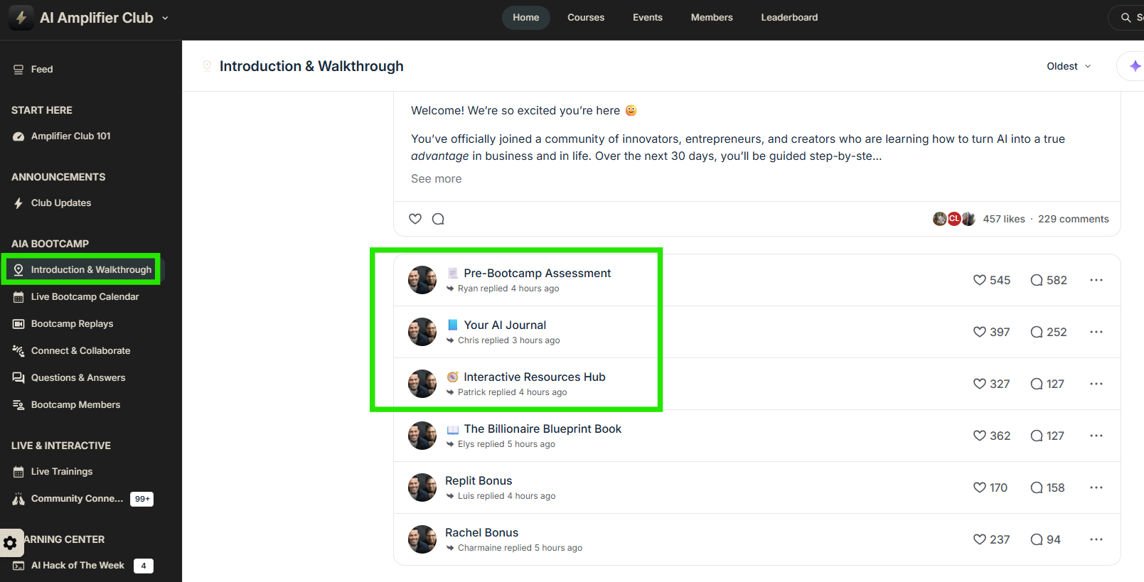 - Navigate to the AIA Bootcamp Section of the AI Amplifier Club and review the Introduction & Walkthrough tab.