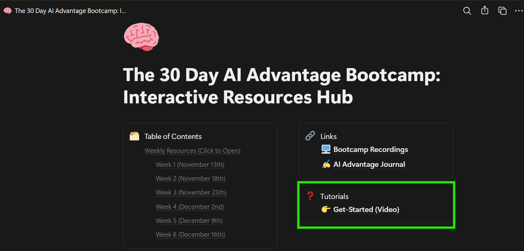 - There is a How To Use Your AI Advantage Journal walkthrough video within the Bootcamp Replays tab as well!