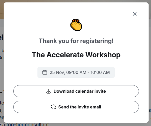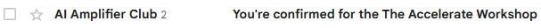 You should then receive a "You're confirmed for The Accelerate Workshop" email to the email address associated with your AI Amplifier Club account, as shown below: