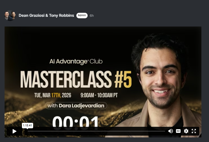 Our most recent AI Advantage Club Live Masterclass took place on Tuesday, March 17, 2026 at 9:00AM PT | 12:00PM ET.