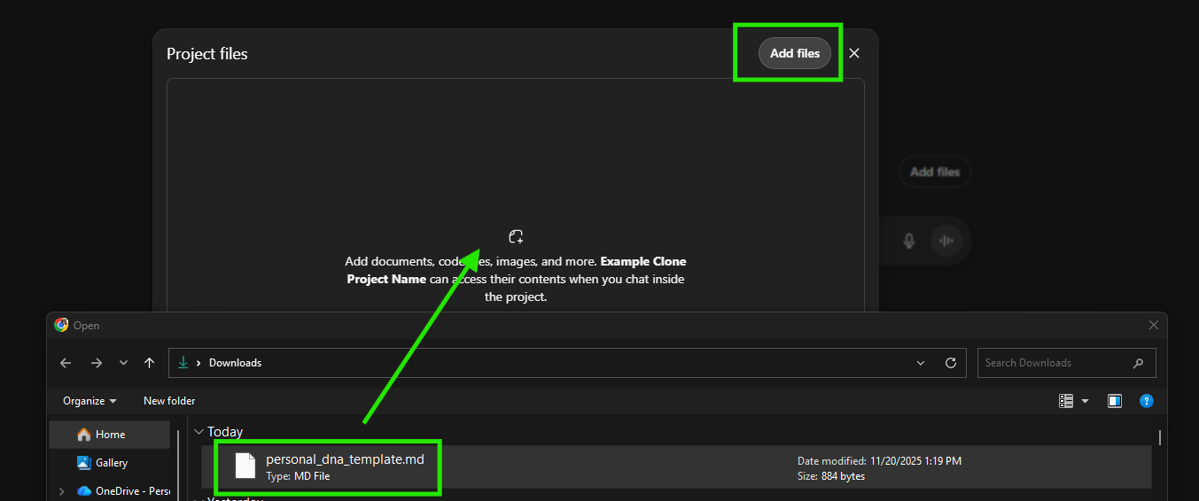 A pop up window will then appear. Click Add files once more. Your File Explorer app will then open so you can select and drag your markdown file into the Project Files area.