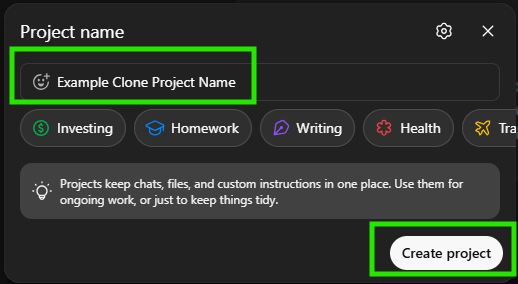 - Saved everything inside a new project so your clone remembers you