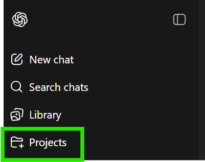 Next step is to select Projects within ChatGPT: