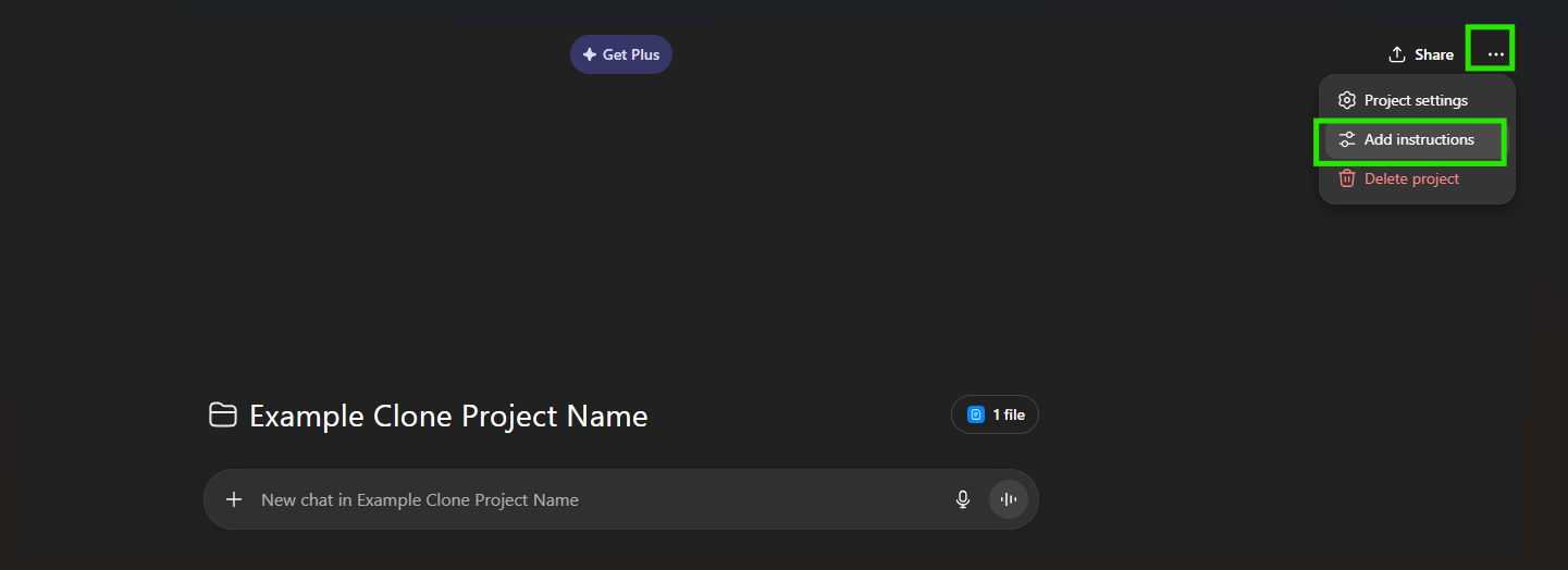 - Next step is to click the 3 dots (â‹…â‹…â‹…) in the upper right corner, Add instructions. Add the instructions provided in Step 3 under Hands On Exercise #2 within the Build Your Clone DNA section of the Interactive Resources Hub, then click Save.