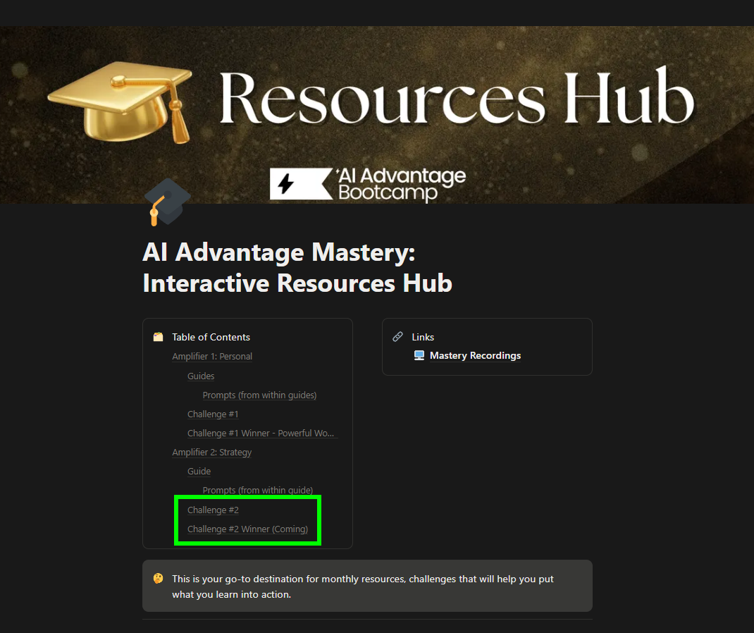 The Resource Center (Interactive Resource Hub) is your #1 destination throughout this program. Everything you need to complete the training—guides, prompts, and supporting materials—lives here. If you ever feel unsure about your next step, this is the first place to check.