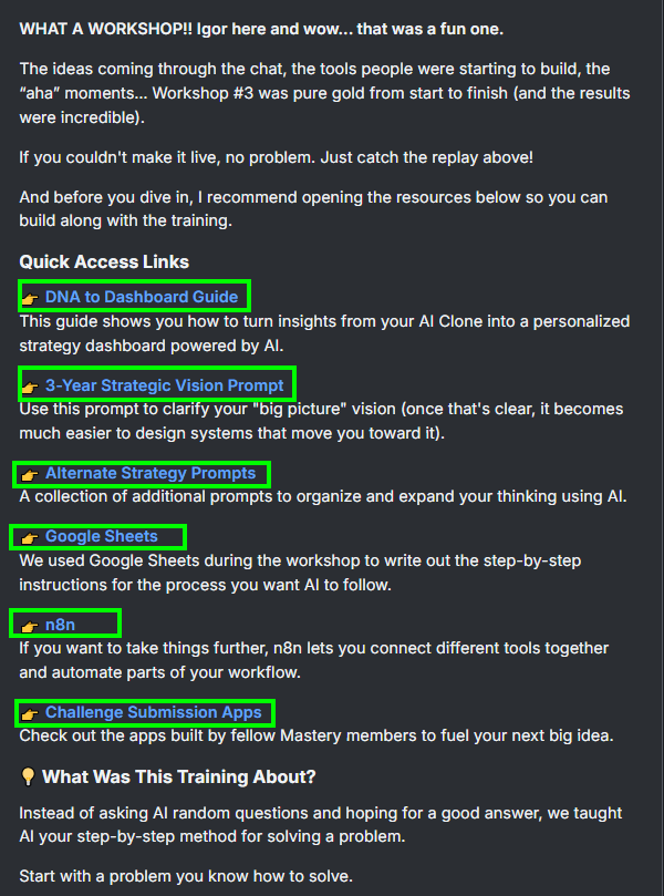 Note: AI Mastery replays are available only to members of the AI Mastery Experience. They are not included with the base AI Advantage Club membership or the AI Advantage Bootcamp.